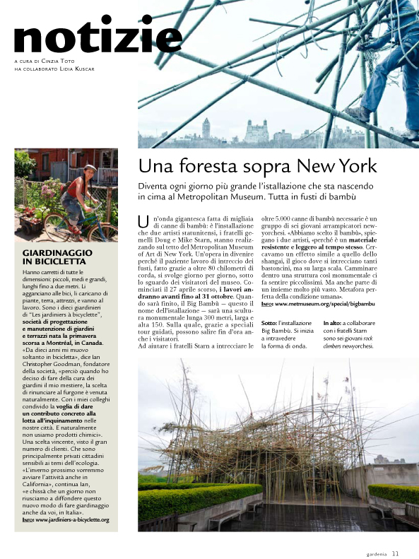 Pendant l’été 2010, Les jardiniers à bicyclette ont voyagé (dans un sens). On parle en effet de nous dans le magazine italien Gardenia. C'est ici.